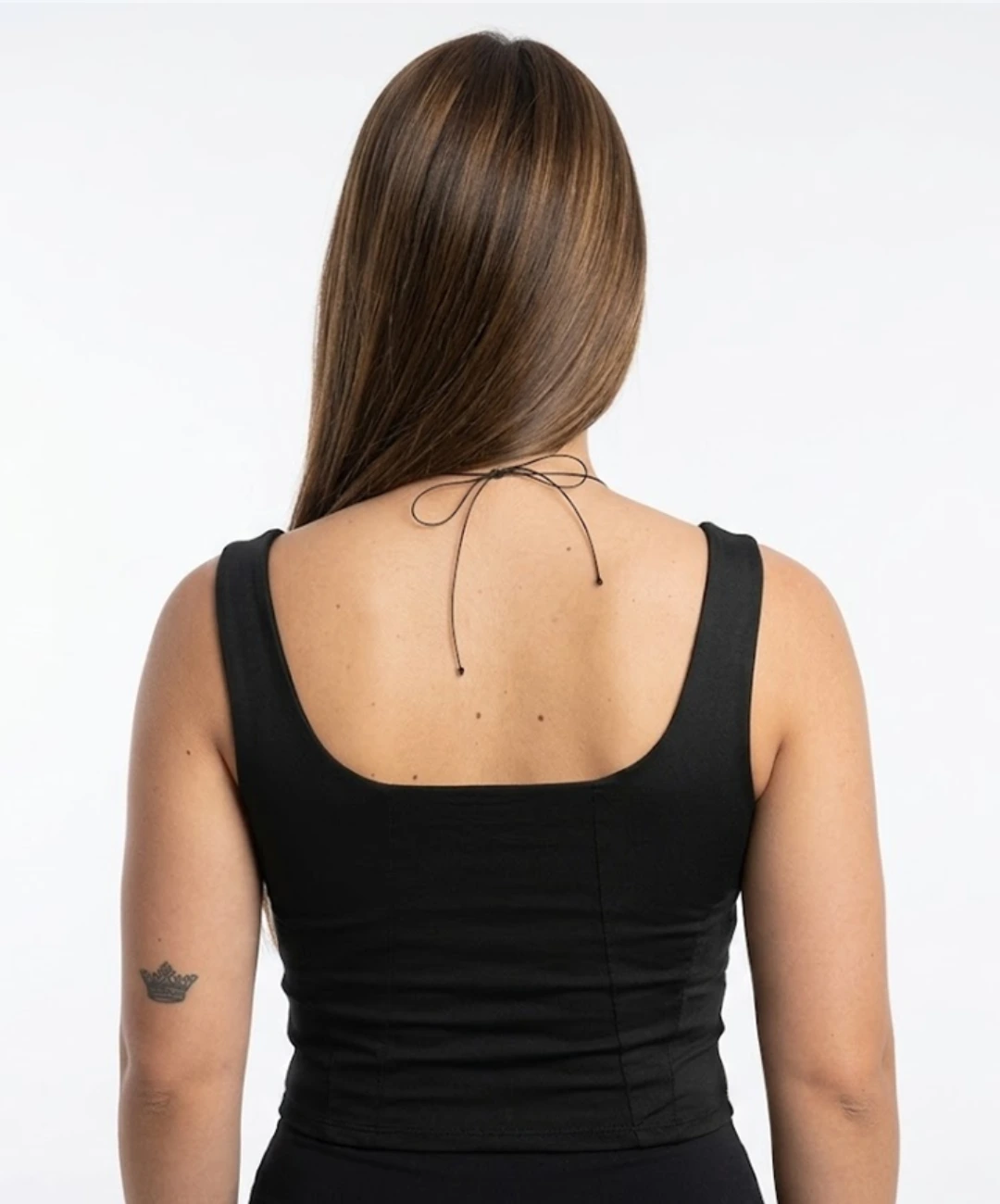 Secado: No utilices secadora; el calor extremo daña el spandex. Seca la prenda extendida sobre una superficie plana para evitar que el peso del agua estire los tirantes